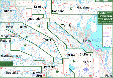 | Teil A, Brandenburg: Berlin Neuruppin Wittstock Meyenburg | Teil B, Mecklenburg: Meyenburg Parchim Schwerin Lübeck | |