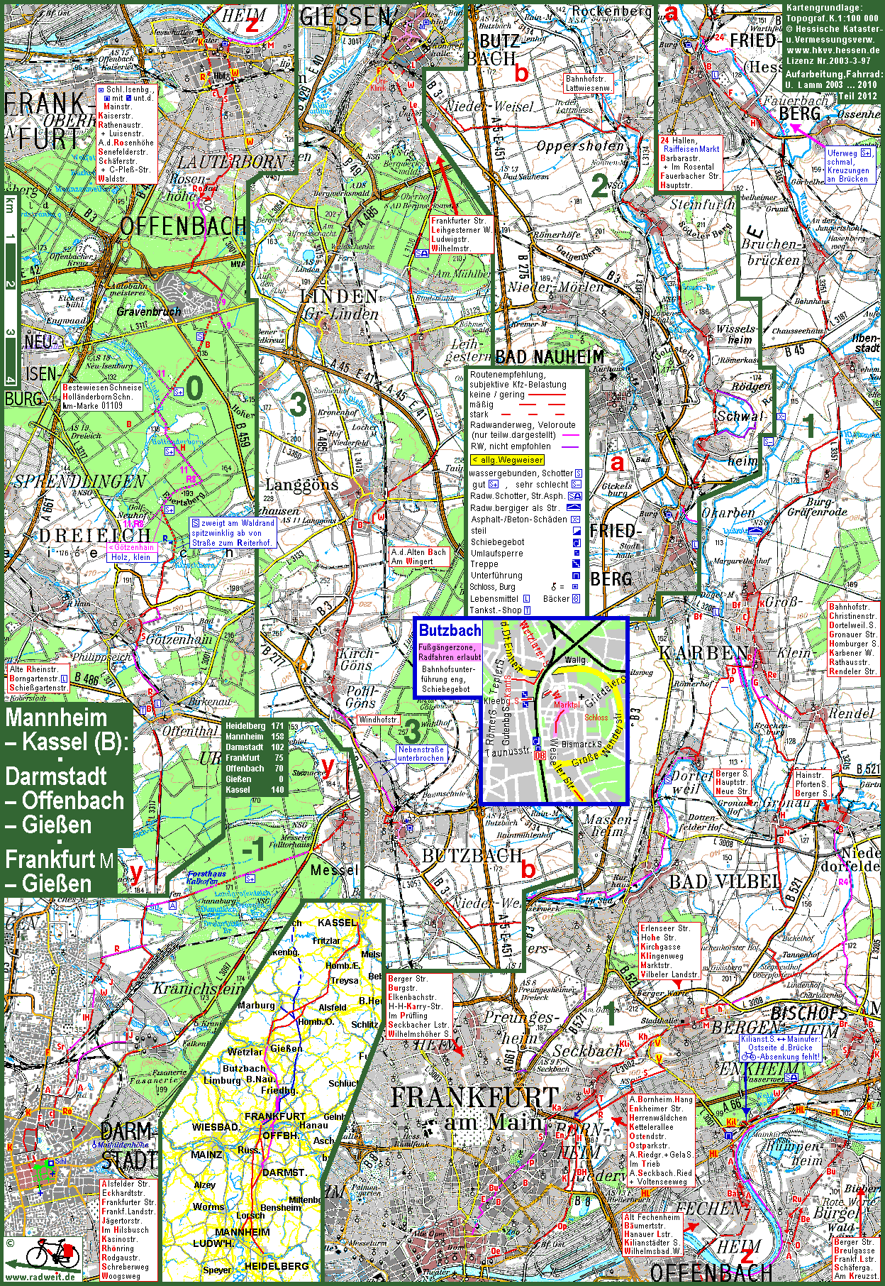 Auf dem Fahrrad direkt von Darmstadt nach Offenbach, von Offenbach nach Gießen und von Frankfurt nach Gießen.