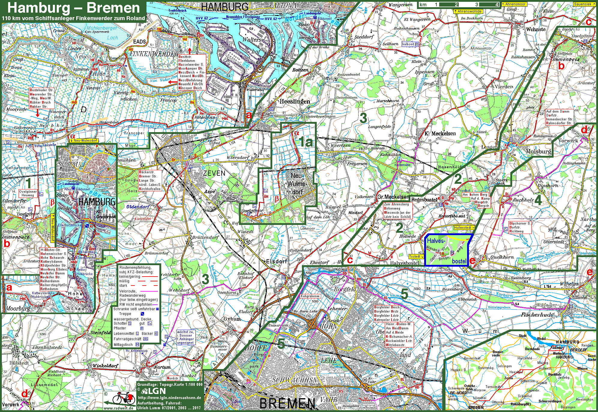 Auf dem Fahrrad direkt von Hamburg nach Bremen und umgekehrt, deutlich kürzer als der Radfernweg Nordheide, von dem jedoch Teile benutzt werden.