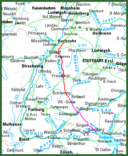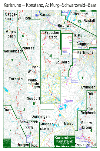 Von Karlsruhe kommt man durch den Hartwald an den Eingang des Murgtales, von der Rheinfähre Plittersdorf durch Rastatt.
