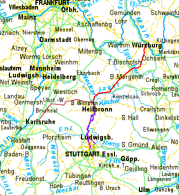 Tracks bei GPSies: • Würzburg Wimpfen Karlsruhe • Karlsruhe Wimpfen Würzburg • Würzburg Heilbronn Stuttgart • Stuttgart Heilbronn Würzburg |
